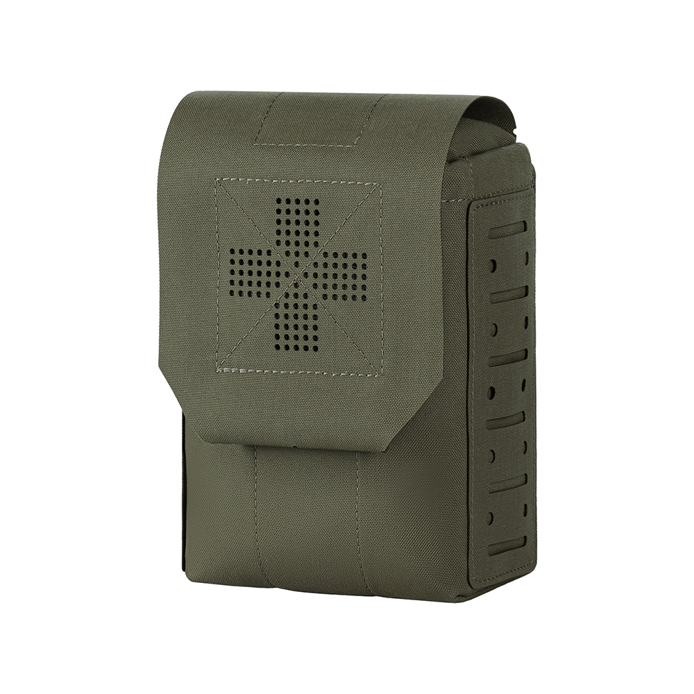 Vonkajšia taška aj vnútorný organizér sú vyrobené z Cordury 500D - odolného materiálu odolného proti oderu a vysokému zaťaženiu. Vnútorné bočné steny sú vybavené nylonovým popruhom, ktorý pomáha taške udržať si tvar. Ďalším upevňovacím prvkom je popruh, ktorý bezpečne drží lekárničku. Taška sa k výstroju pripevňuje pomocou laserovo rezaného MOLLE rozhrania. Vnútorný organizér je vybavený chlopňou, ktorá sa pripevňuje k vonkajšej taške, slúži ako fixácia a pomáha v prípade potreby rýchlo vybrať lekárničku. Zapína sa na suchý zips v štýle peračníka. Vnútri sady sú tri priehradky a dvojúrovňové elastické pásky pre organizáciu zdravotníckych potrieb.